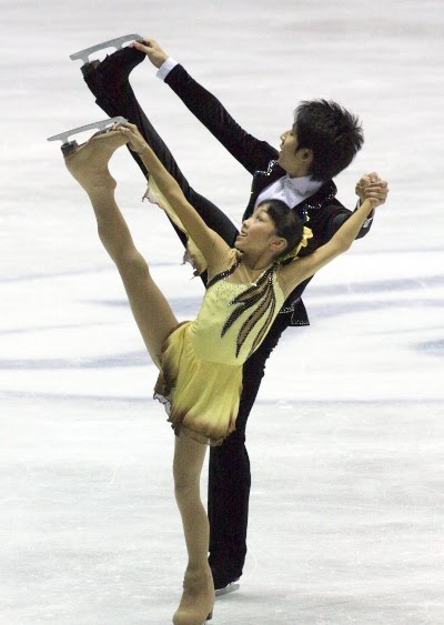 One thing I need to get off my designer chest: After watching this past weekend, I am now in LOVE with the Chinese Pairs couple of Sui Wenjing and Cong Han. She's about 4' 7" tall and like EIGHT!!! (OK, I lie, she's 15, but still!) and they were the World Junior Champions last year and now are debuting in the Senior Grand Prix circuit. And did I mention I LOVE them! They were unbelievable. Those two are ones to watch! If they are that good now, huneyyyyyyy!!!!!!!!! But I digress, let's get to my Figure Skating Costumes "Two Cents":